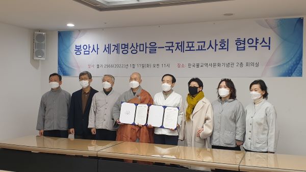 ๊ตญ์ ํฌ๊ต์ฌํ(ํ์ฅ ์ด์ฌํ)๋ 1์11์ผ ์ค์ 11์ ํ๊ตญ๋ถ๊ต์ญ์ฌ๋ฌธํ๊ธฐ๋ ๊ด 2์ธต ํ์์ค์์ ๋ด์์ฌ ์ธ๊ณ๋ช ์๋ง์(์ ์์ฅ ๊ฐ์ฐ ์ค๋)๊ณผ ์ ๋ฌดํ์ฝ์ ์ฒด๊ฒฐํ๋ค. ์ด๋ฒ ํ์ฝ์ผ๋ก ๊ตญ์ ํฌ๊ต์ฌํ๋ ์ธ๊ณ๋ช ์๋ง์์ ์ธ๊ตญ์ธ ๋์ ํ์ฌ ๋ฐ ์ฌ์ ์ง์๊ณผ ํ๋ณด, ๋ฐ์ ์ ์ํ ์๋ฌธ์ ์ฐธ์ฌํ๋ค.