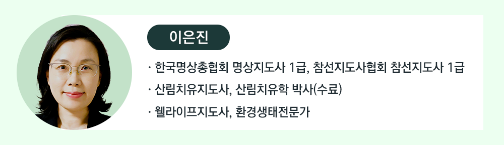 이은진 강사는 한국명상총협회 명상지도사 1급 및 참선지도사협회 참선지도사 1급 자격을 모두 갖춘 명상 분야의 유경험자이다.