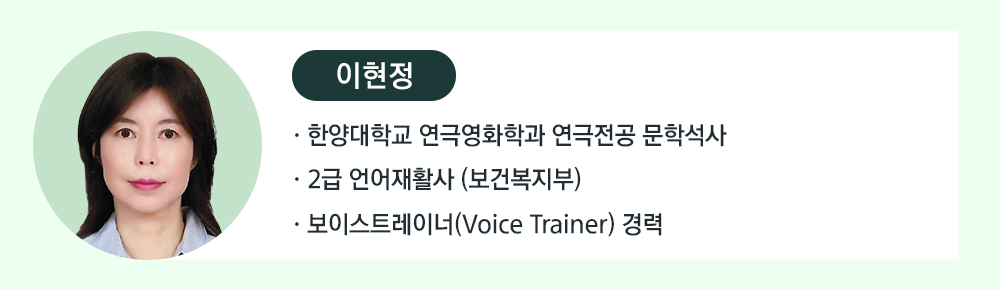 보건복지부 2급 언어재활사 자격과 다년간의 보이스트레이너(Voice Trainer) 경력을 바탕으로, 목소리를 통한 자기 표현과 소통 능력 향상에 전문성을 갖추고 있다.