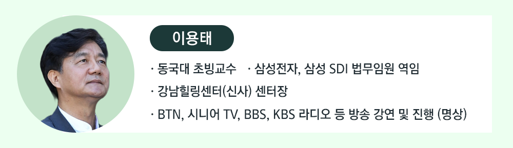 이용태 교수는 동국대 지적재산학과 초빙교수이자 미국변호사로서 삼성전자와 삼성 SDI에서 법무 임원을 역임하며 쌓은 폭넓은 경험과 지혜를 바탕으로 사람들을 지도하고 있다.